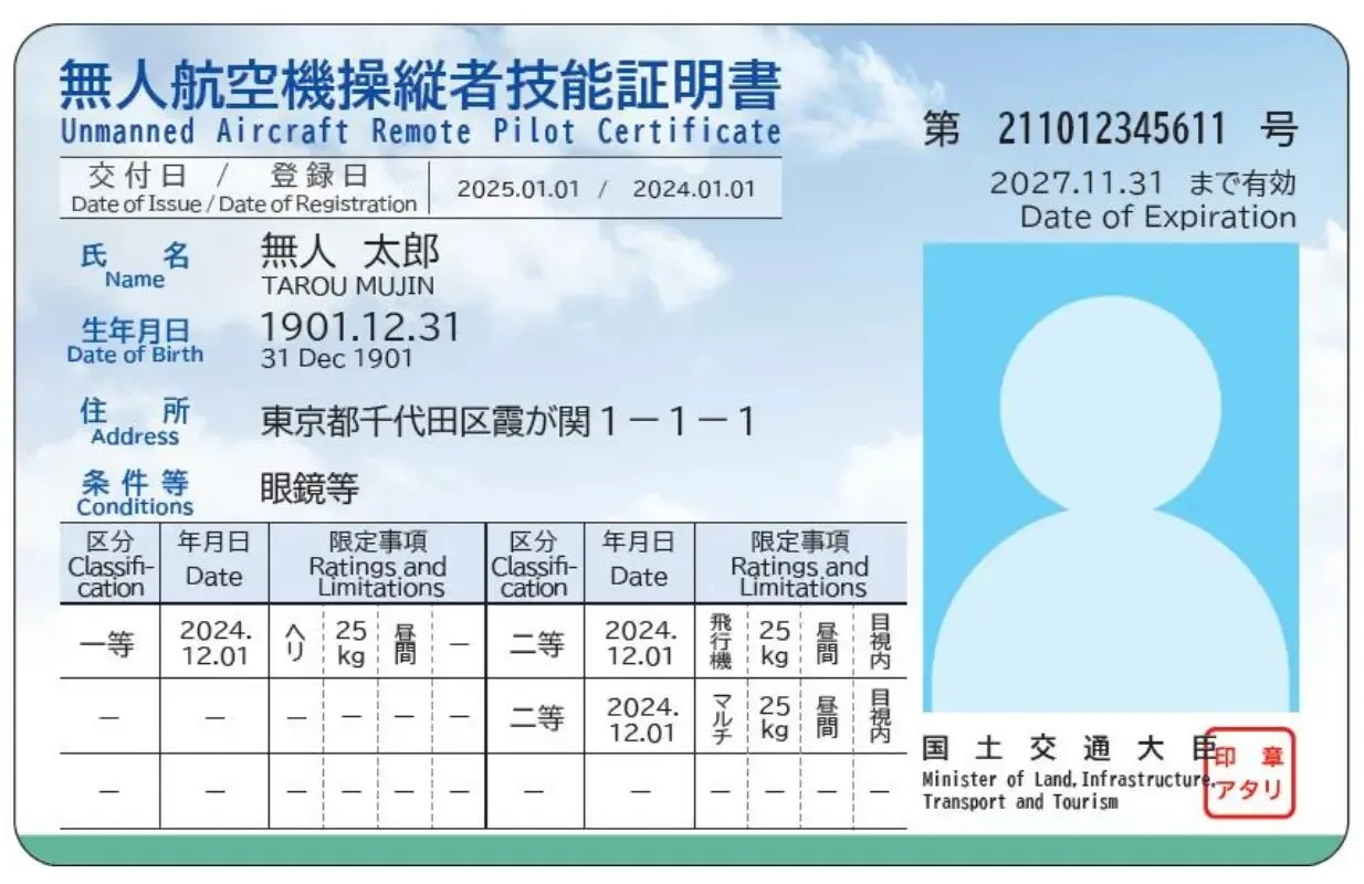 一等無人航空機操縦士(一等資格、二等無人航空機操縦士(二等資格)の2つ