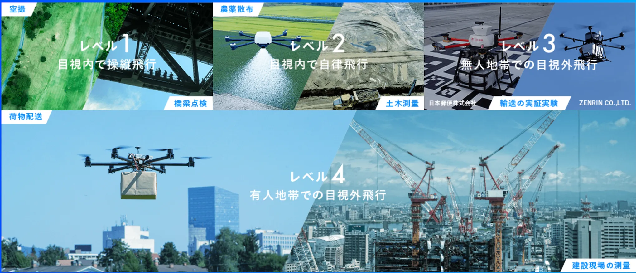 ドローンの飛行には4つのレベルがあります。以前はレベル3までの飛行のみ認められておりまし