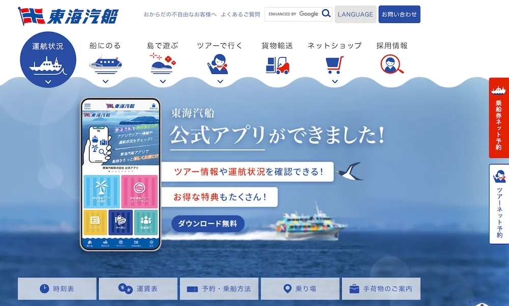 大型船に関する詳細情報は東海汽船HPから確認できます。
