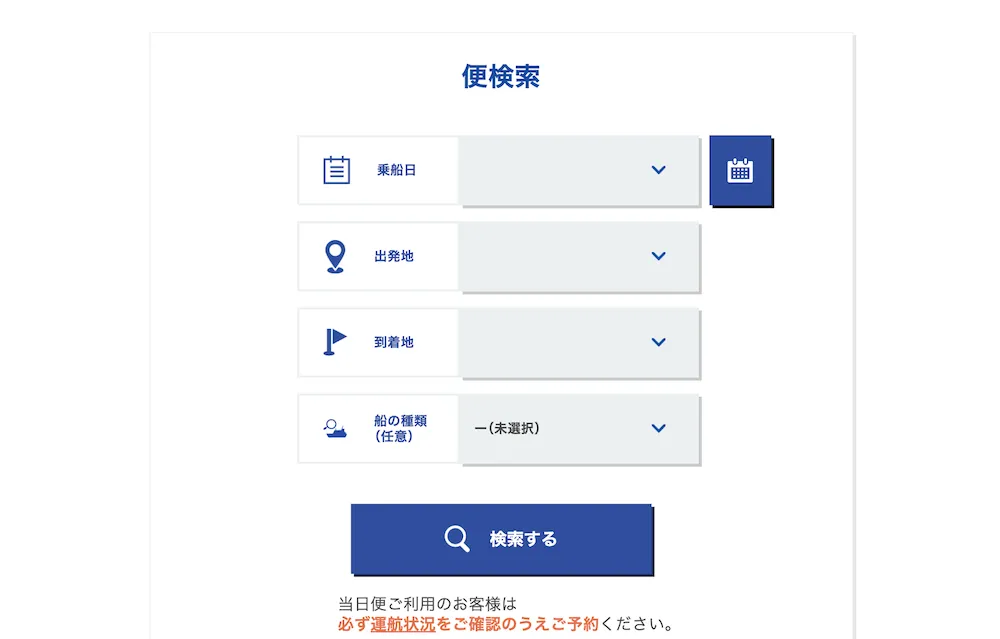 基本的には、ジェット船の予約をお願いいたします。