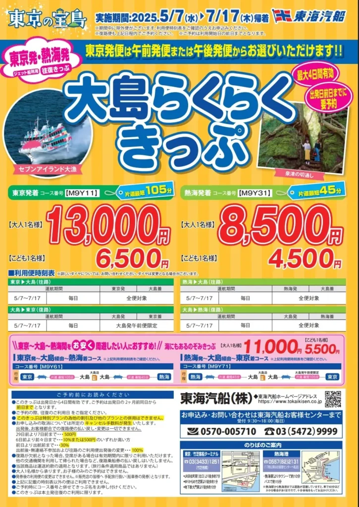 - 大島らくらく切符(閑散期):13,000円〜